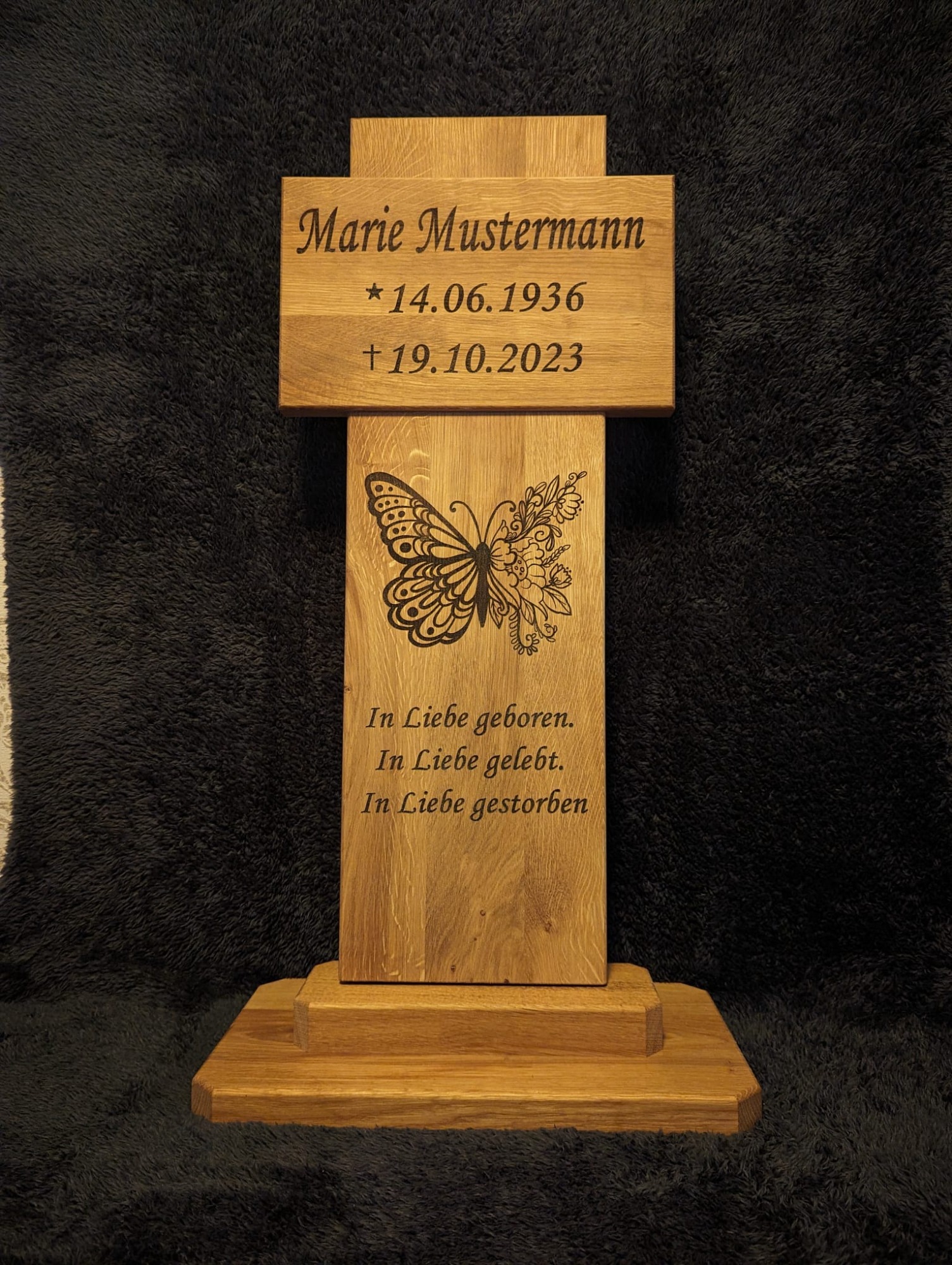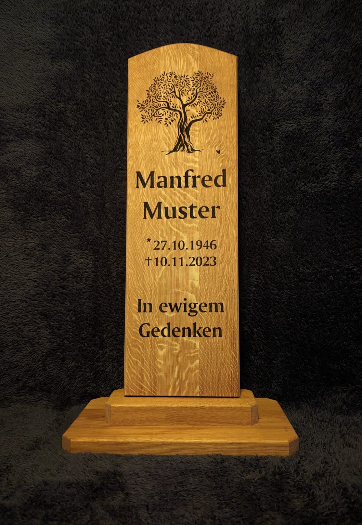 Wir bieten Ihnen individuell gestaltete Grabstelen aus hochwertigem Eichenholz an.